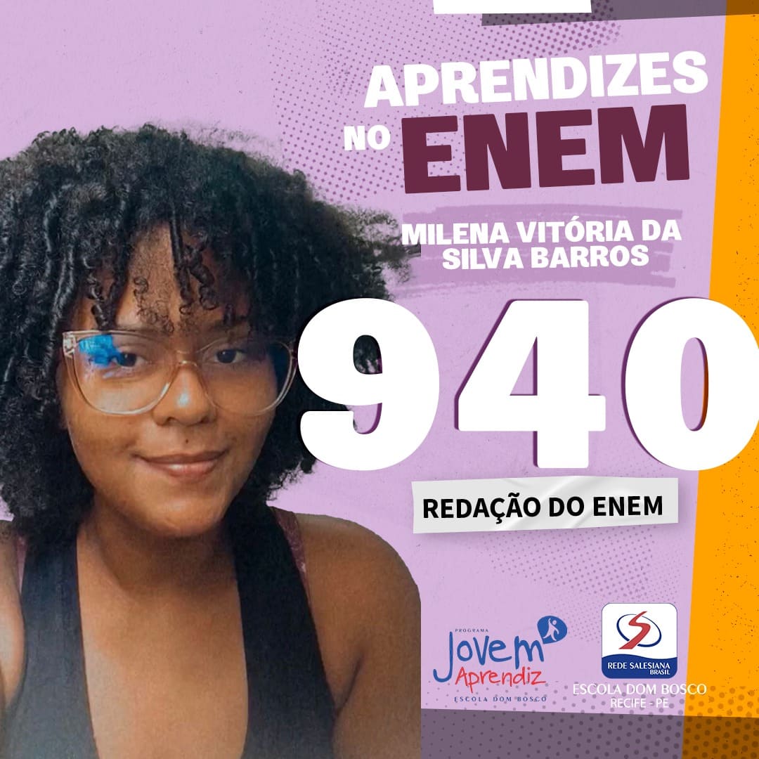 Com uma carga horária intensa que inclui horas de estudo e suas responsabilidades como aprendiz no @salesianorecife, Milena superou desafios e se destacou no exame, conquistando uma nota que a coloca entre os grandes desempenhos do estado.